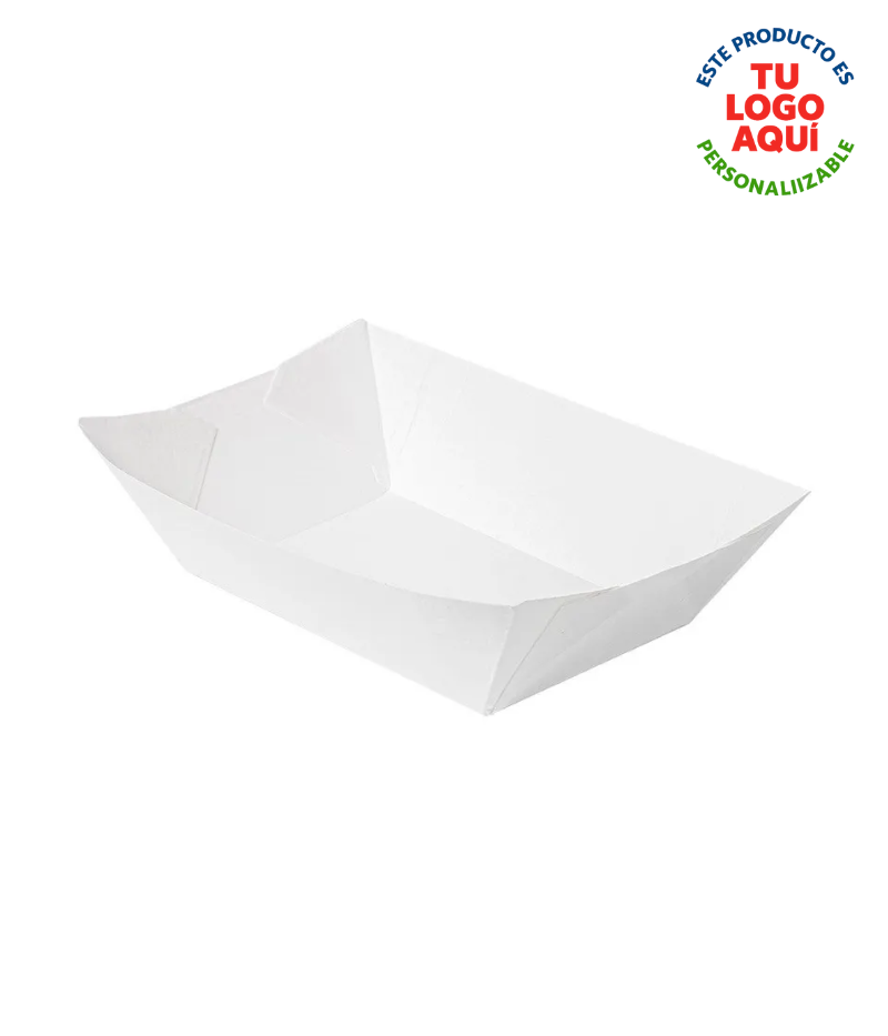 Fabricada en cartón resistente y biodegradable, ofrece una excelente presentación para productos como comidas rápidas, snacks, postres o porciones individuales.