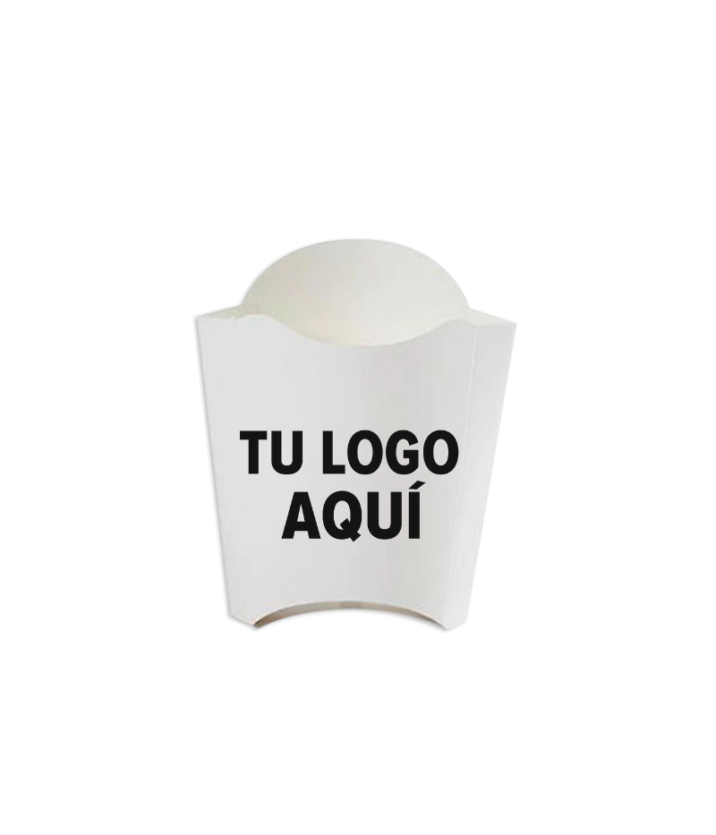 Fabricada en cartón biodegradable y resistente a la grasa, mantiene las papas crujientes por más tiempo y evita filtraciones.