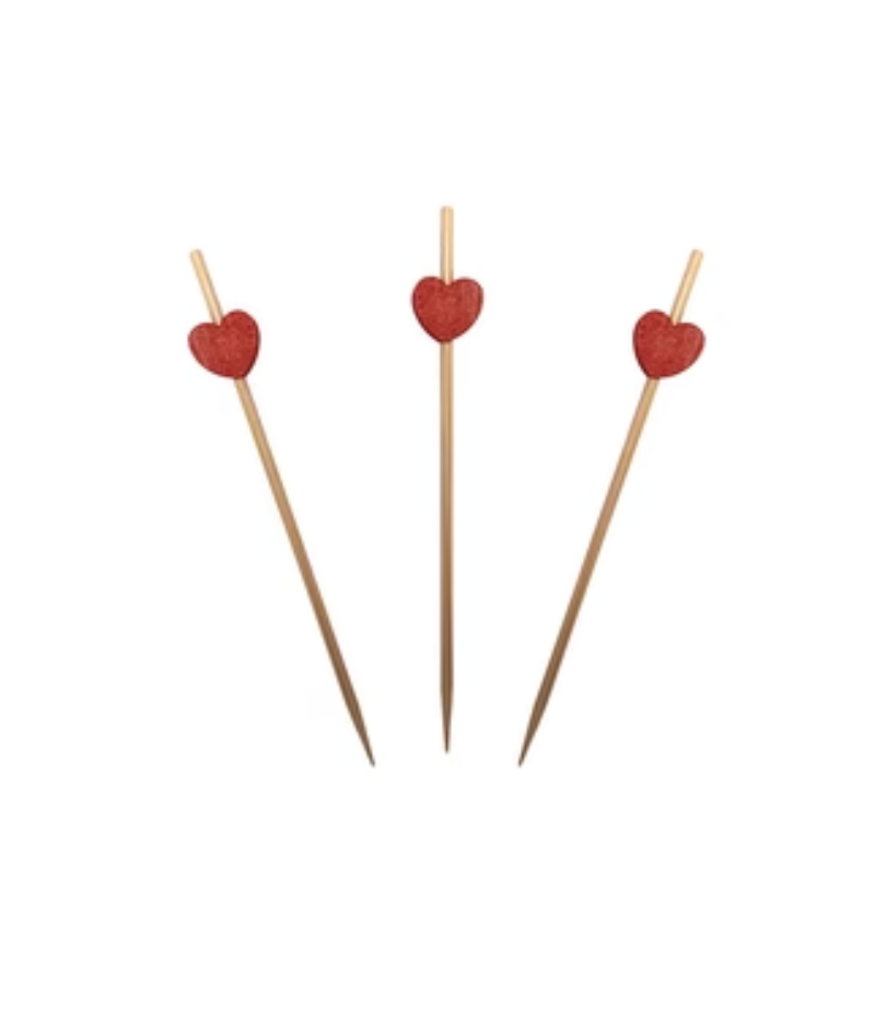 Pincho de Bambú Perla Corazón Paqx100Und/Cjx100und